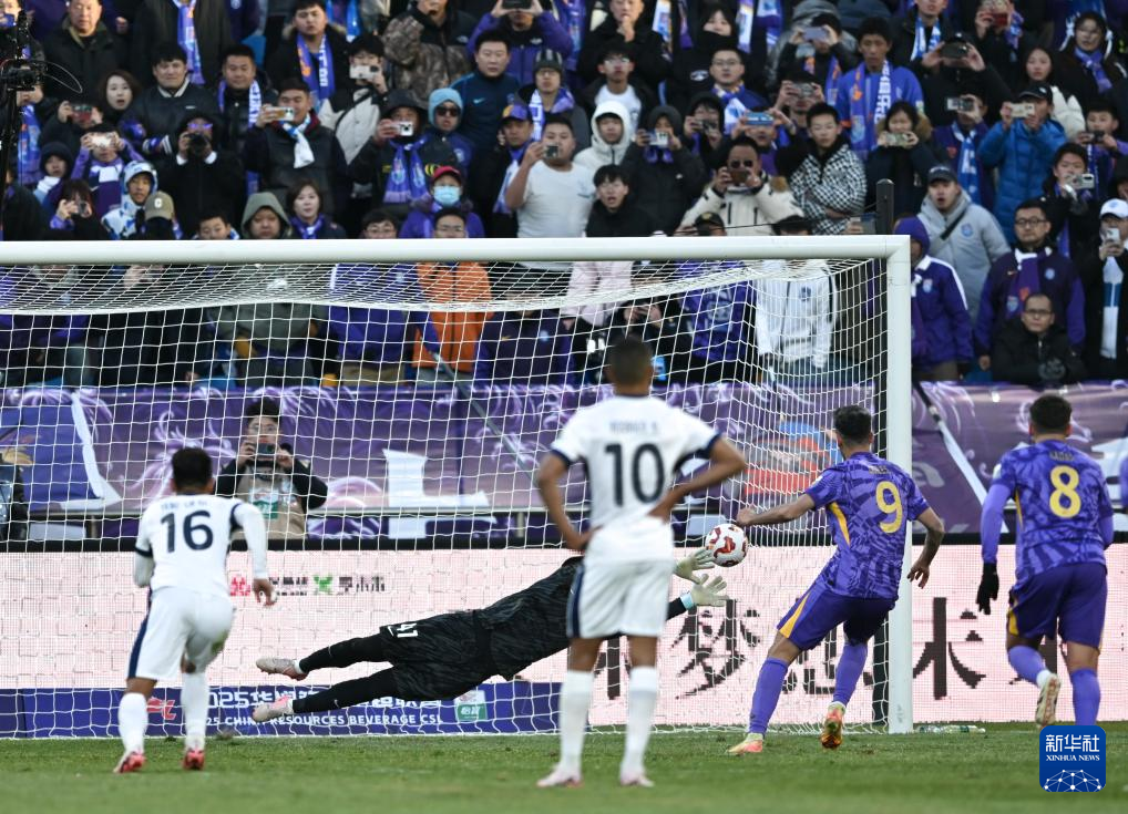 2月23日,天津津门虎队球员基莱斯(右二)主罚点球被扑出。