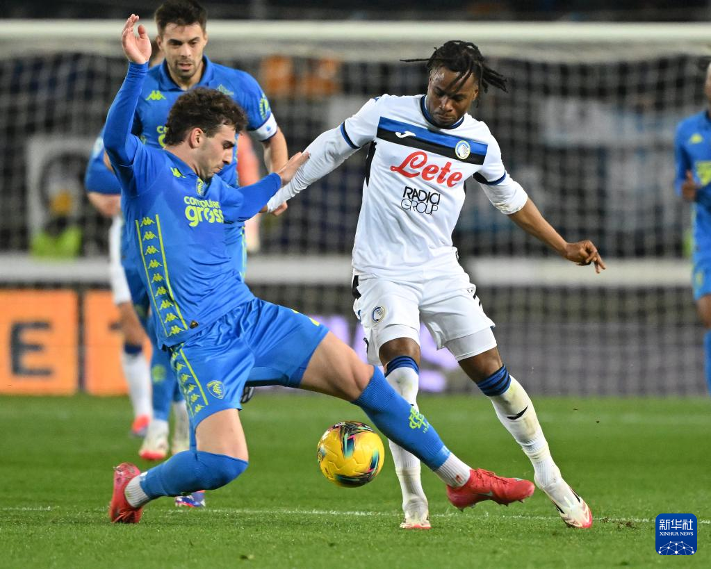 2月23日,亚特兰大队球员卢克曼(右)与恩波利队球员戈利奇泽拼抢。