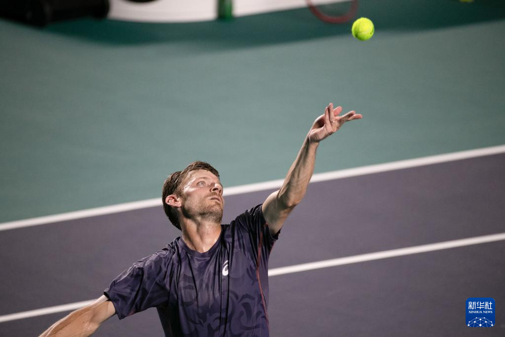 2月27日,戈芬在比赛中发球。