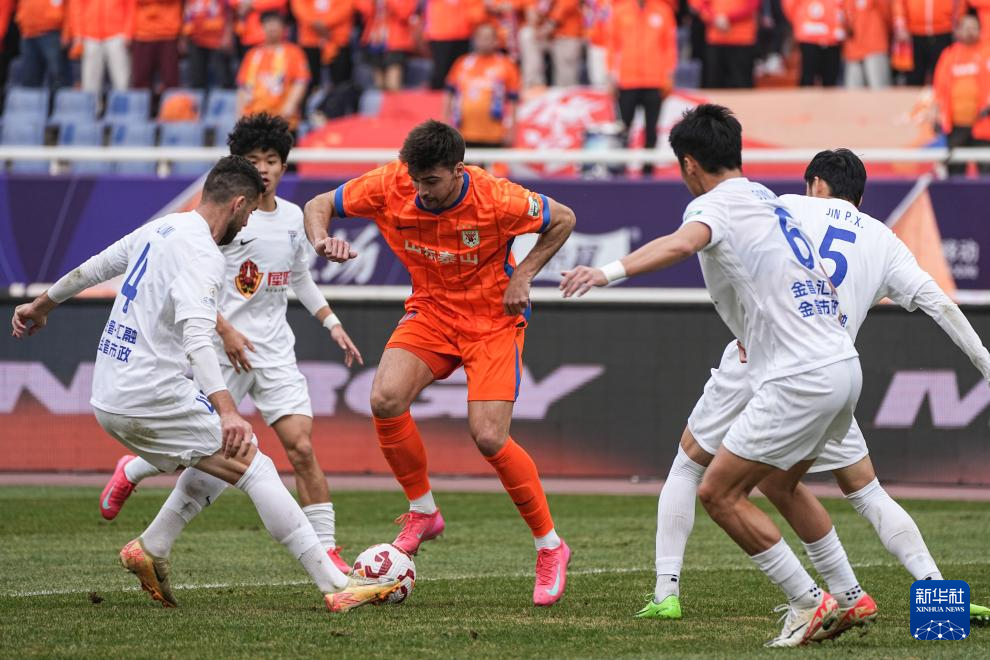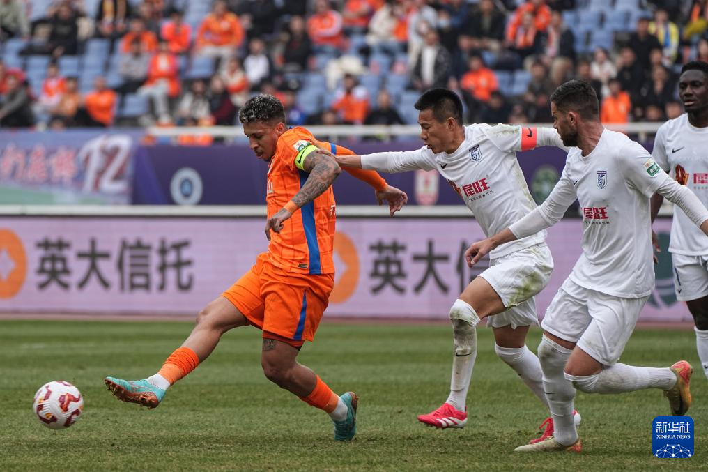 2月28日,山东泰山队球员泽卡(中)在比赛中。