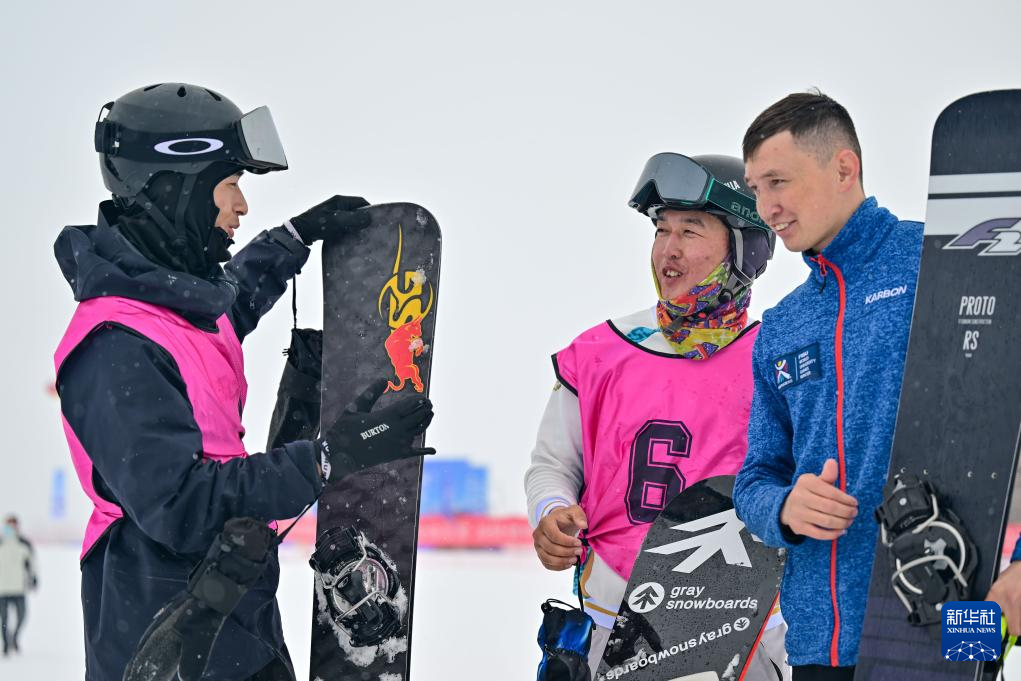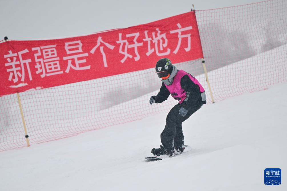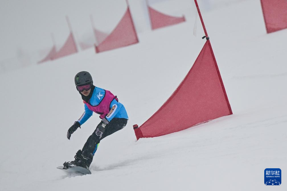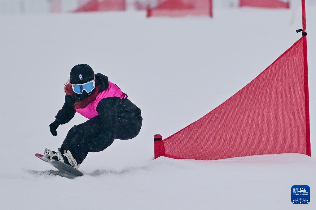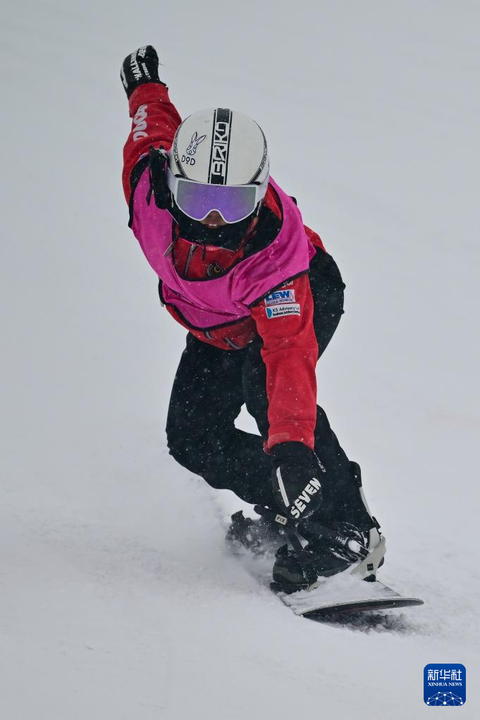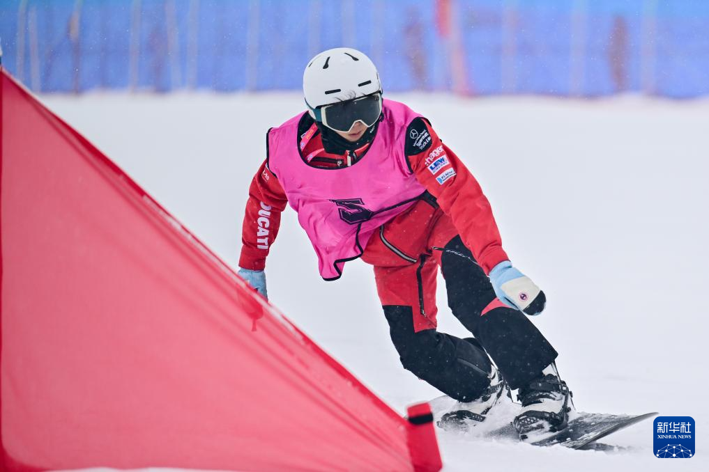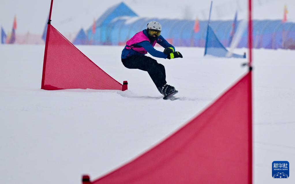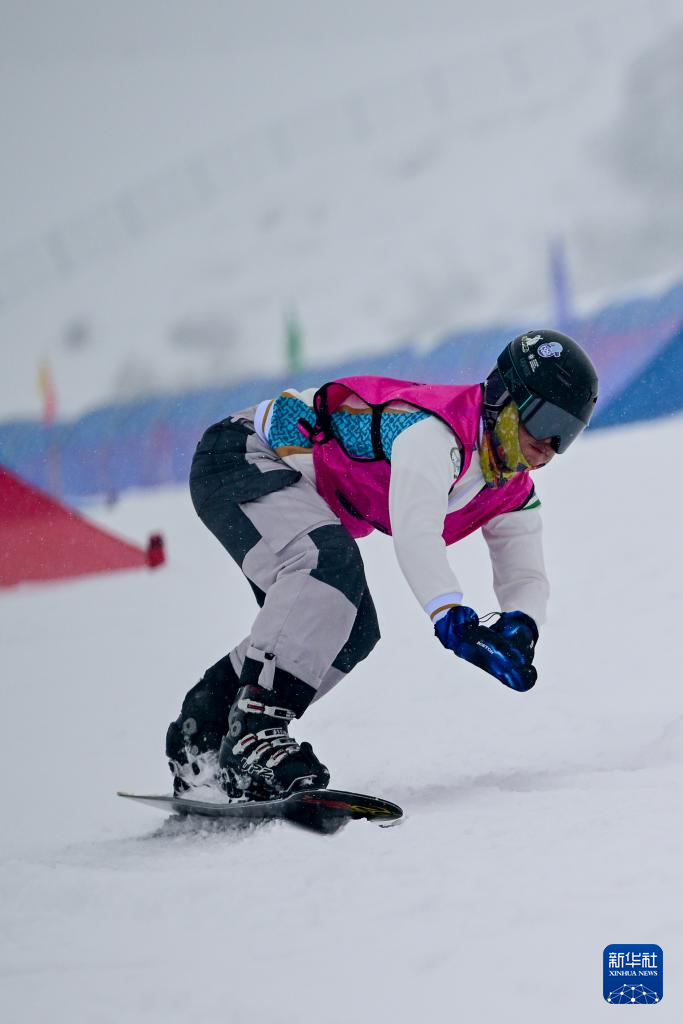 3月1日,新源代表队选手布尔兰·巴依那扎尔在青少年单板平行大回转比赛中。