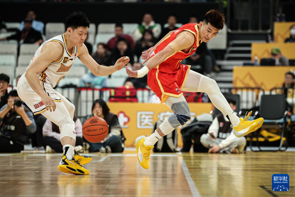 3月5日,山西汾酒队球员迪亚洛(右)试图抢断浙江方兴渡队球员布朗。