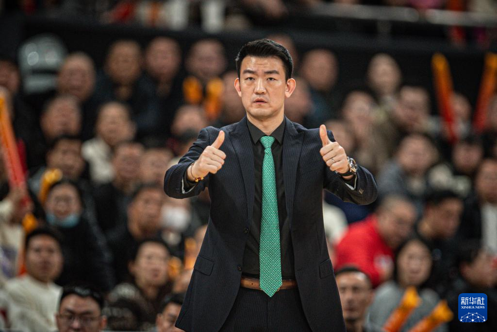 3月5日,山西汾酒队主教练潘江在比赛中指挥。