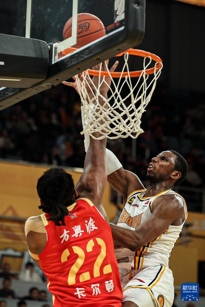 3月5日,山西汾酒队球员古德温(右)在比赛中。