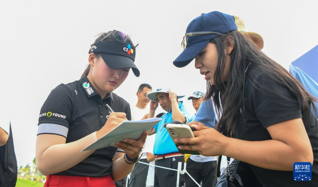 3月9日,中国选手李淑瑛(左)在比赛结束后为观众签名。最终,她以282杆、低于标准杆6杆的总成绩获得并列第五名。