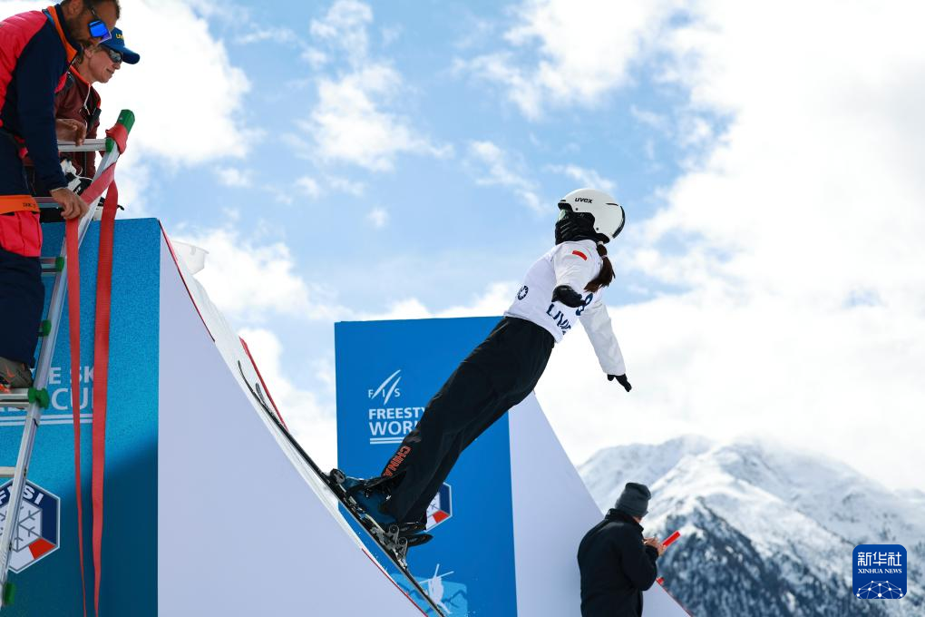 当日,中国自由式滑雪空中技巧队在意大利利维尼奥进行赛前训练,备战2024-2025赛季国际雪联自由式滑雪世界杯(利维尼奥站)比赛。