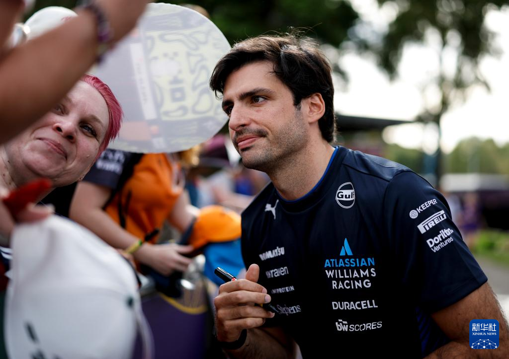 3月15日,威廉姆斯车队西班牙车手塞恩斯(右)与粉丝互动。