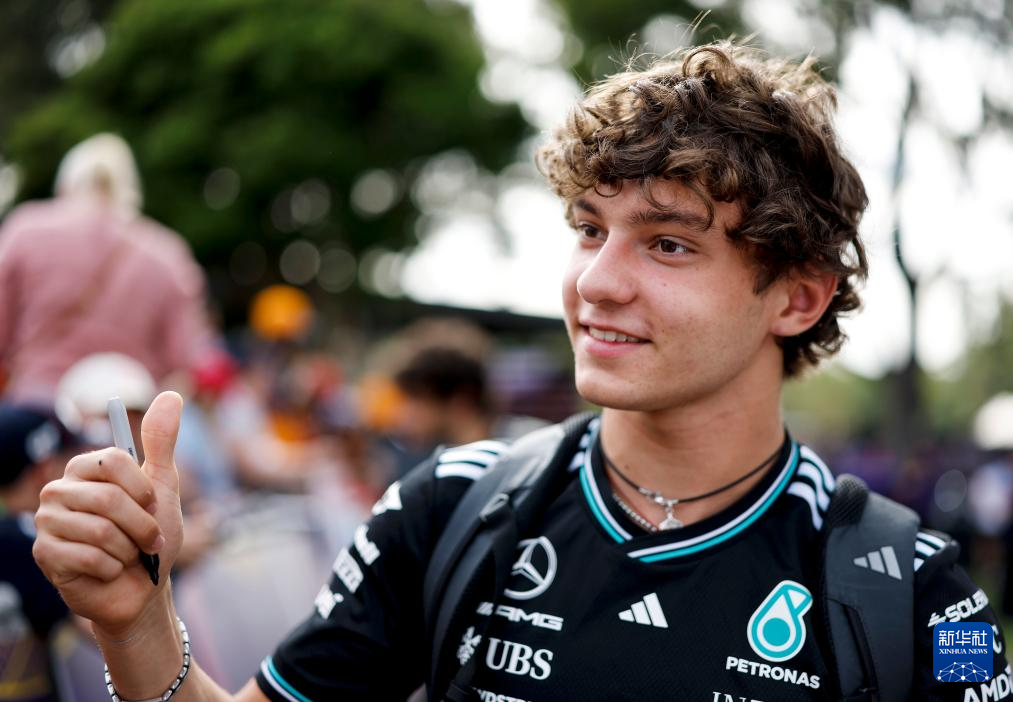 3月15日,梅赛德斯车队意大利车手安东内利与粉丝互动。