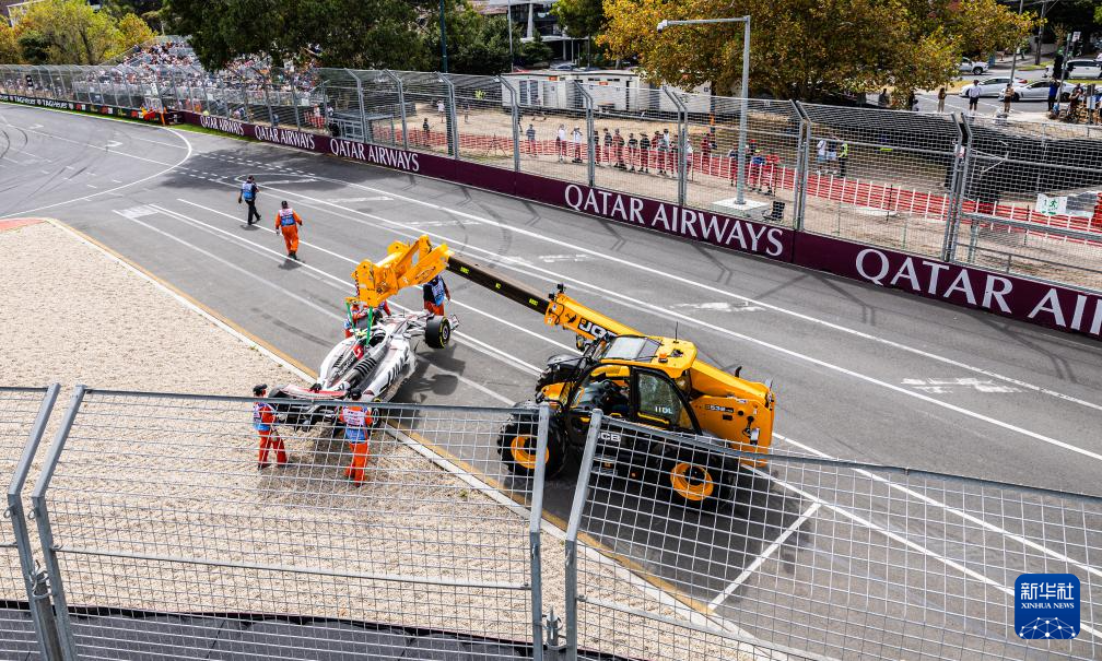 3月15日,吊车在哈斯车队英国车手贝尔曼冲出赛道后清理现场。