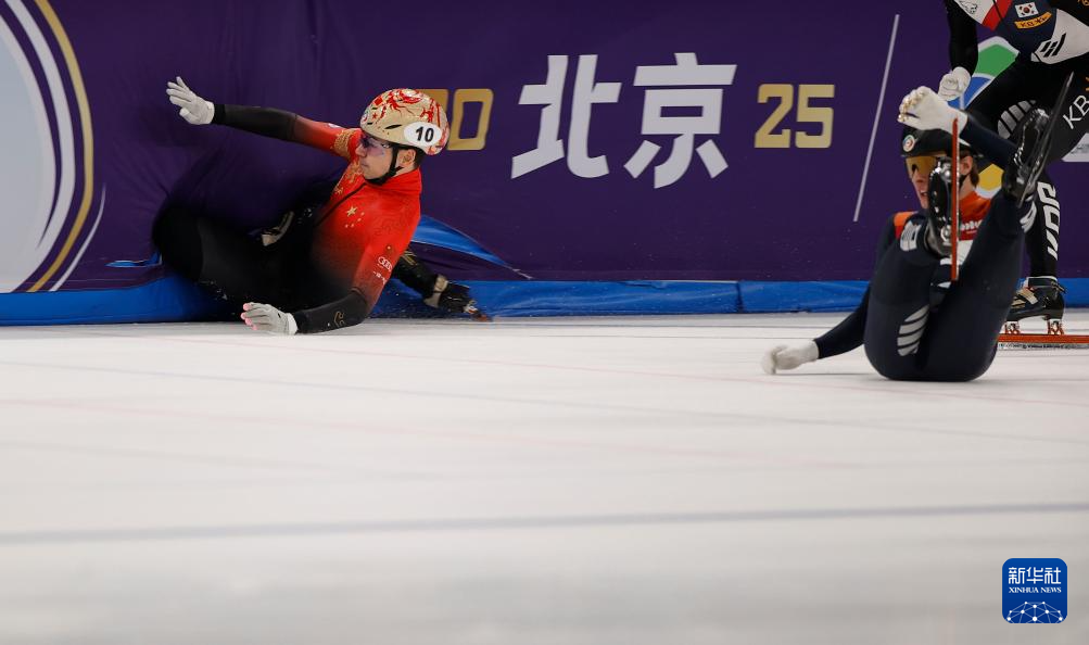 3月15日,中国队选手刘少昂(左)遭到荷兰队选手延斯·范特·沃特的犯规后,两人双双摔倒。