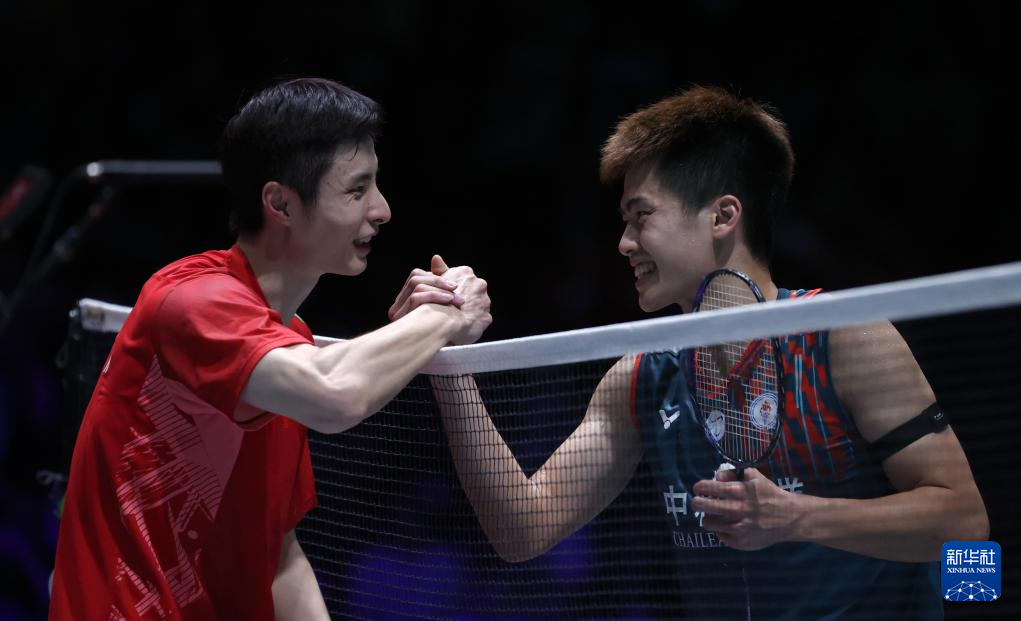 3月16日,石宇奇(左)与李佳豪赛后相互致意。