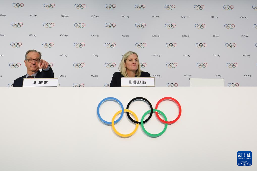 3月20日,国际奥委会新当选主席考文垂(右)在发布会上。