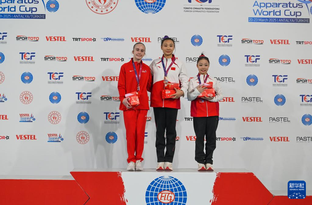 当日,在土耳其安塔利亚举行的2025年国际体联体操世界杯安塔利亚站高低杠决赛中,中国选手杨凡予微获得冠军,美国选手克莱尔·皮斯和中国选手田倬凡分获亚军与季军。