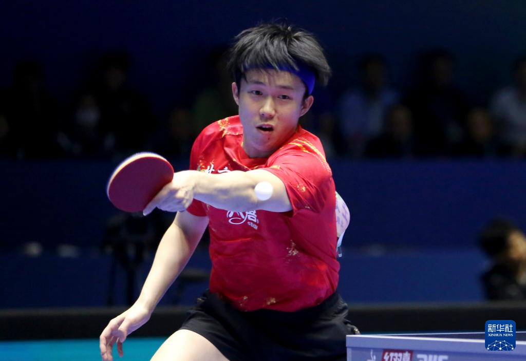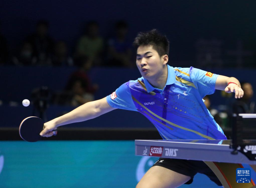 3月23日,北京八喜队选手王楚钦在比赛中回球。他3比0战胜广东队选手敖华磊。