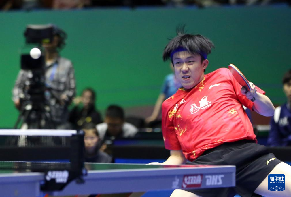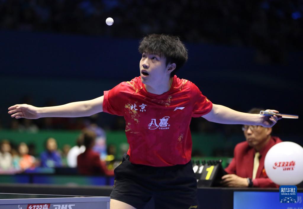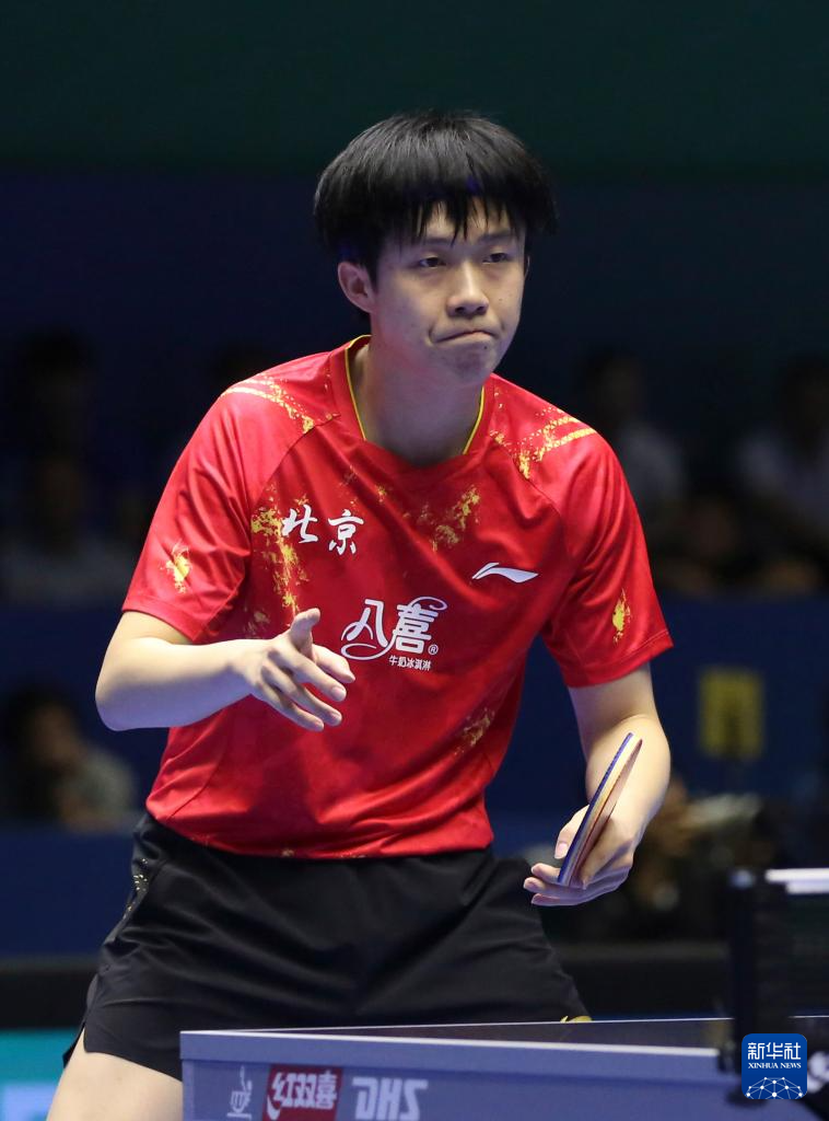 3月23日,北京八喜队选手王楚钦在比赛中。他3比0战胜广东队选手敖华磊。