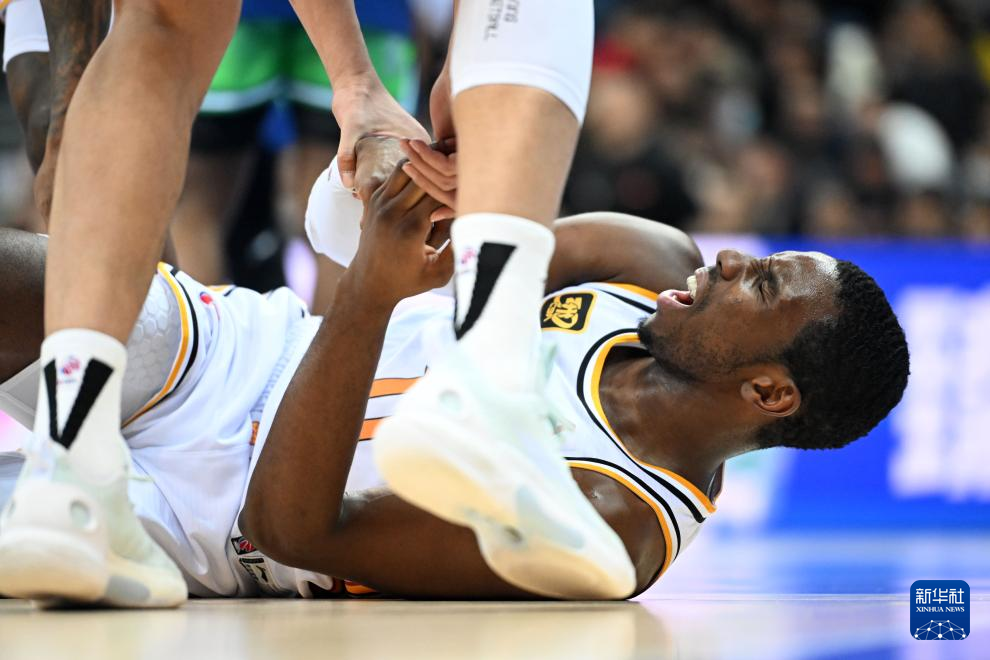3月27日,山西汾酒队球员迪亚洛在比赛中倒地。
