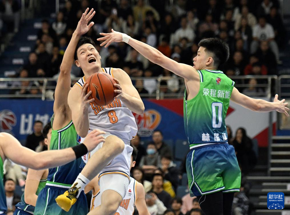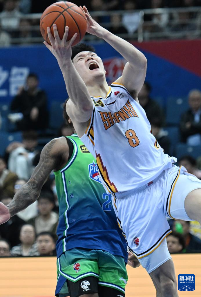 3月27日,山西汾酒队球员张宁(中)在比赛中上篮。
