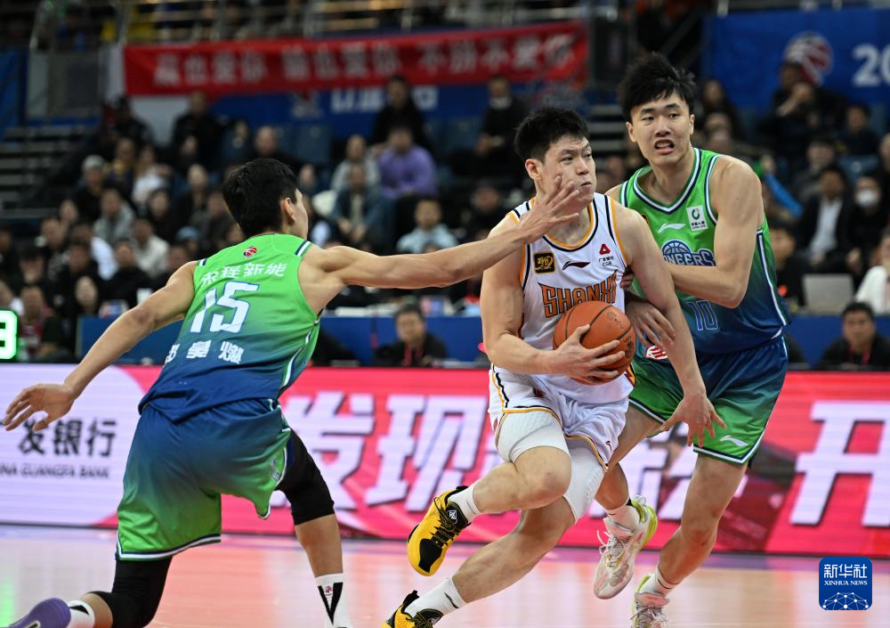 3月27日,山西汾酒队球员张宁(中)在比赛中突破。