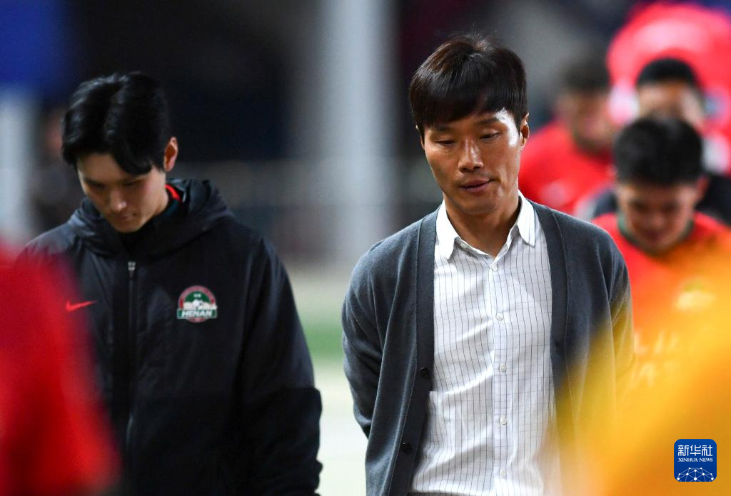 4月1日,河南俱乐部酒祖杜康队主教练南基一(右)在比赛后。