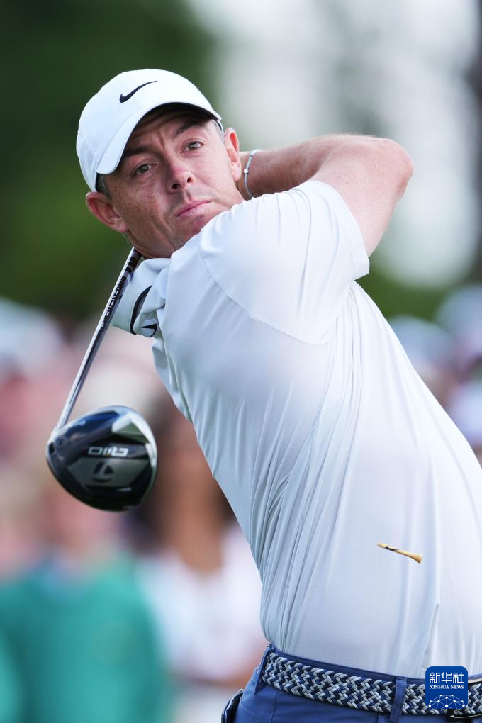 4月12日,罗里·麦克罗伊开球后观看落点。