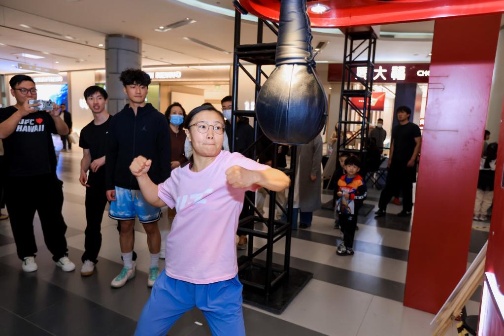 新华社西安4月13日电(记者姚友明)UFC(终极格斗冠军赛)精英之路女子草量级冠军石铭日前来到西安,参加了“UFC粉丝体验之旅”西安站活动。她先与几位大学生篮球运动员在单杠悬吊、Z字敏捷等场地进行了互动,随后向记者介绍了自己对职业生涯的规划。
