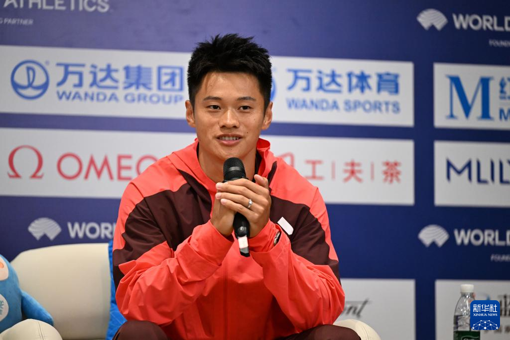 4月25日,中国短跑运动员谢震业在新闻发布会上。