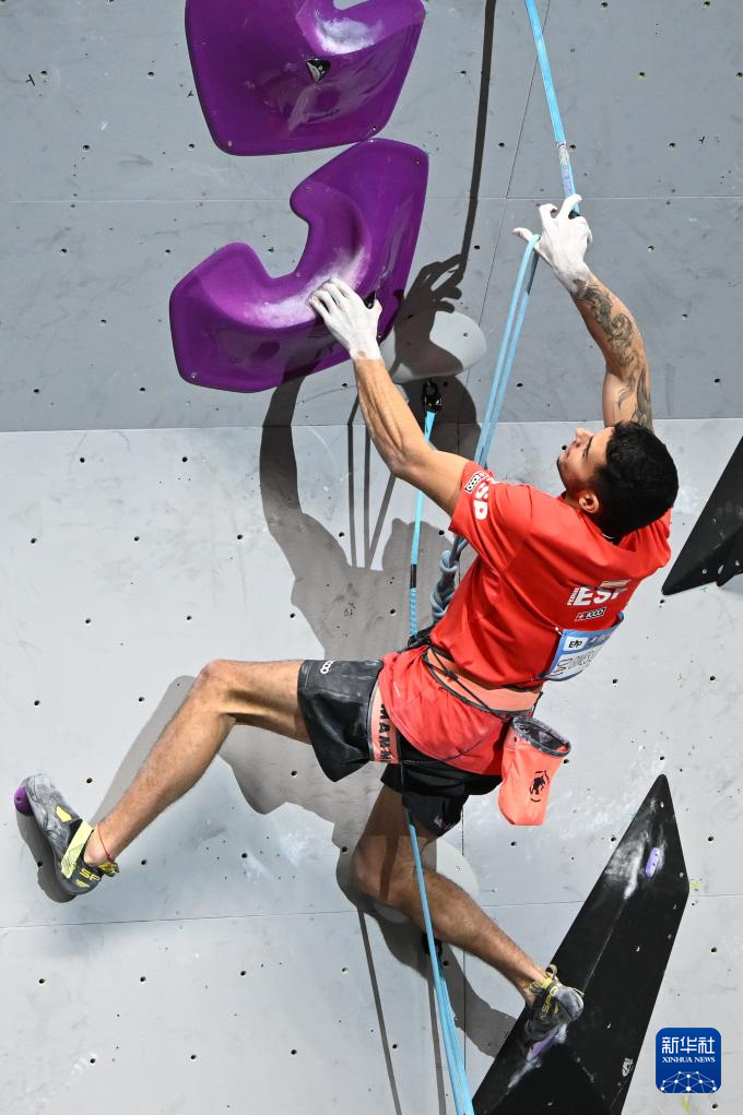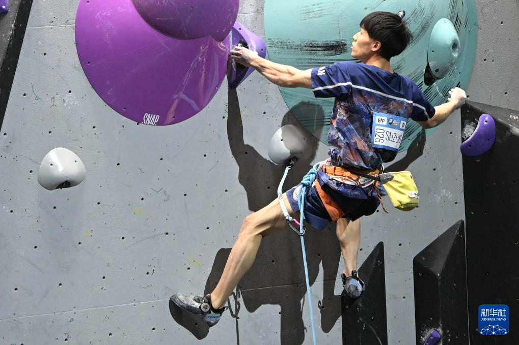 当日,2025年国际攀联攀岩世界杯(吴江站)男子难度赛决赛在江苏苏州吴江汾湖文体中心举行。