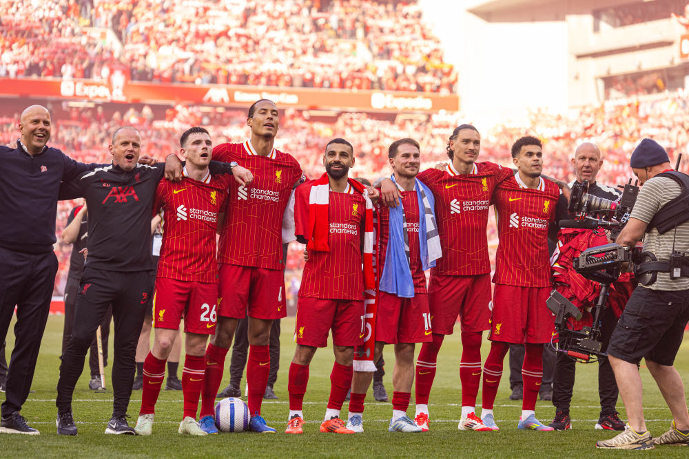 好在利物浦在联赛中并没有“掉链子”,争冠对手也不争气:卫冕冠军曼城早早掉队,位居联赛第二、一直苦苦追赶的阿森纳被欧冠和英超的双线作战拖住了脚步。在初来英超的斯洛特的带领下,利物浦34轮比赛过后取得25胜7平2负积82分的战绩,领先第二名阿森纳15分提前夺冠。虽然争冠的激烈程度较以往稍逊,但在一个原本更多被定义为过渡期的赛季,利物浦拿出的这张成绩单显然已经远超预期。