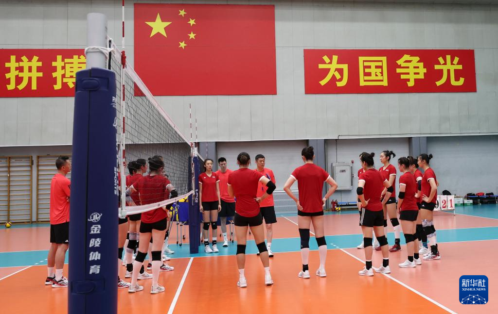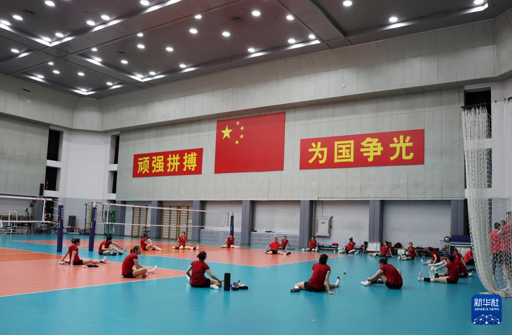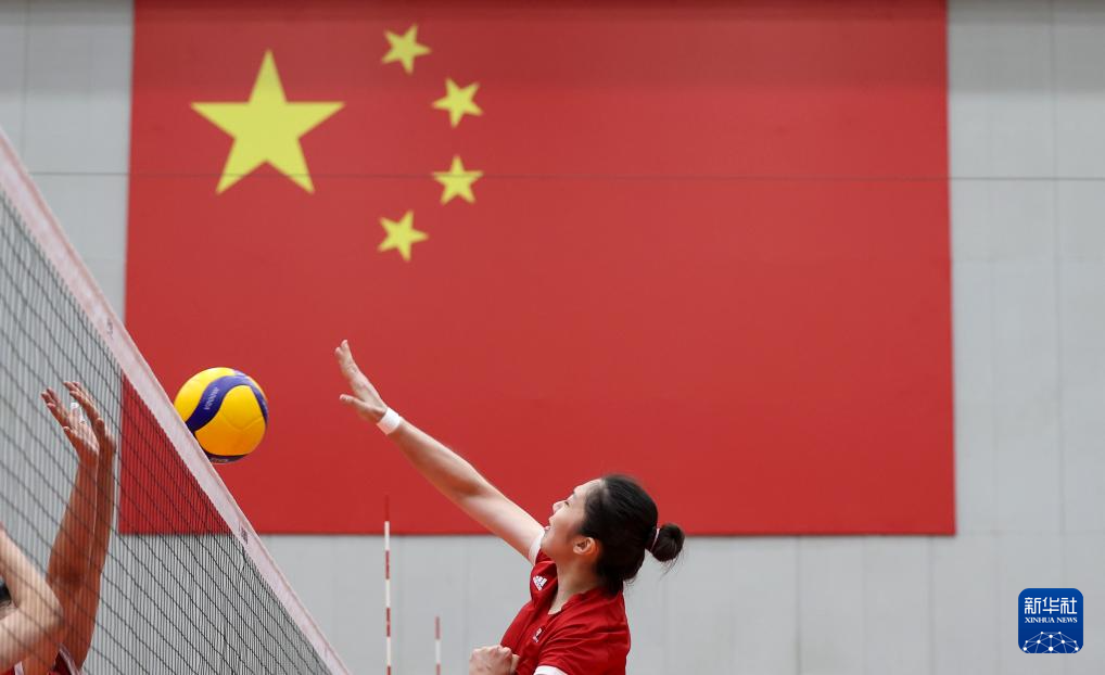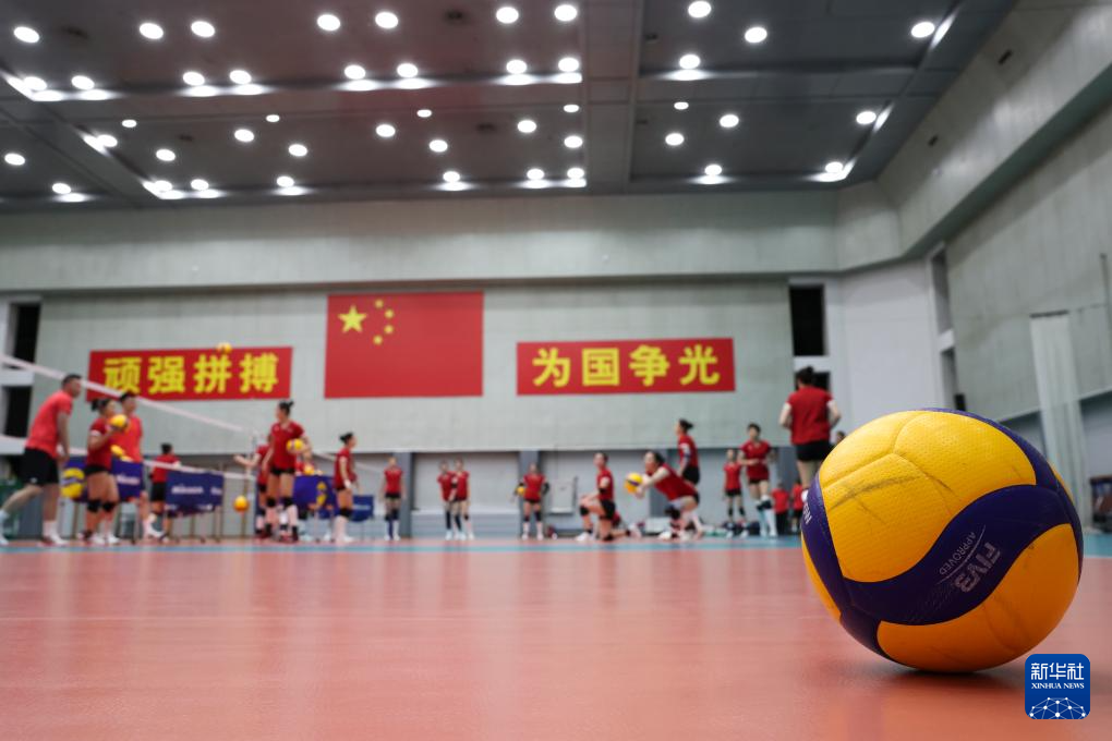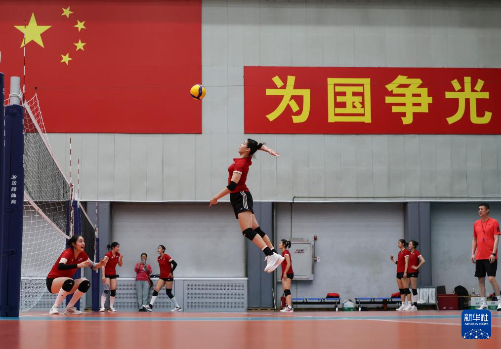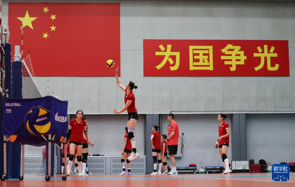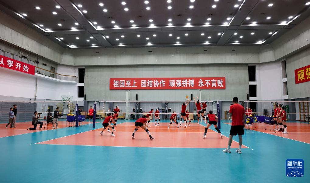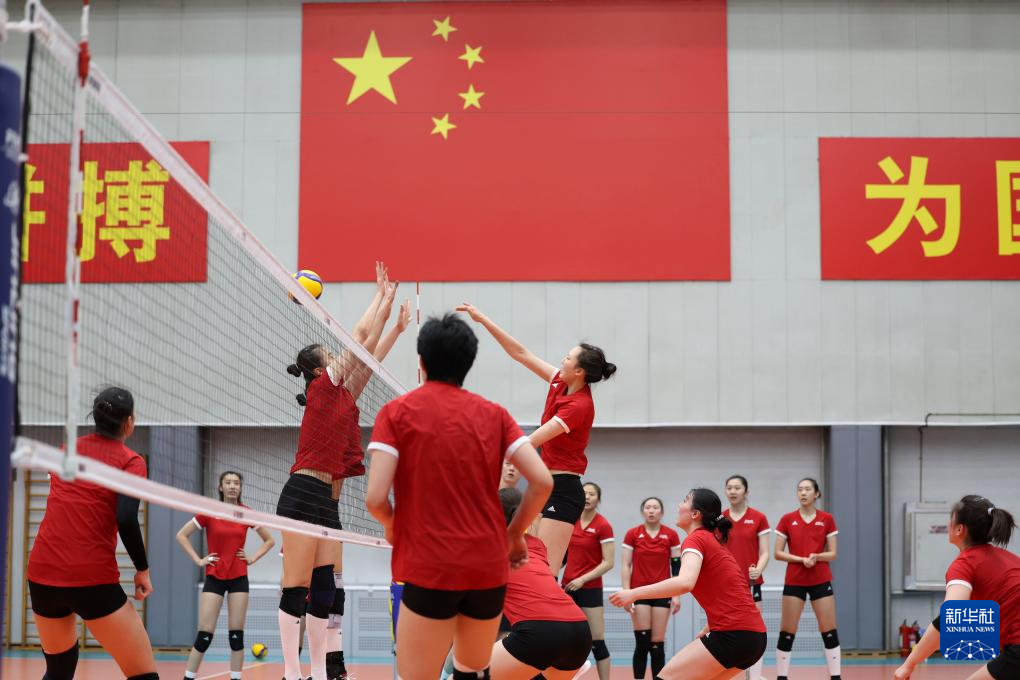 当日,新一届中国国家女子排球队在北京举行公开训练课。