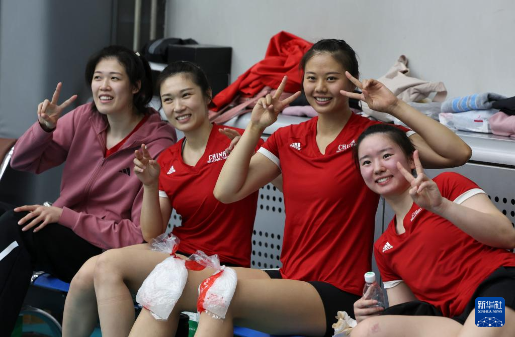 4月28日,中国女排队员在公开训练课上。