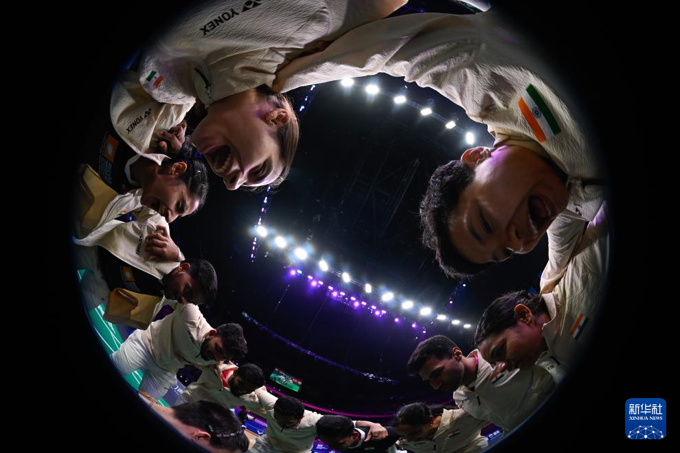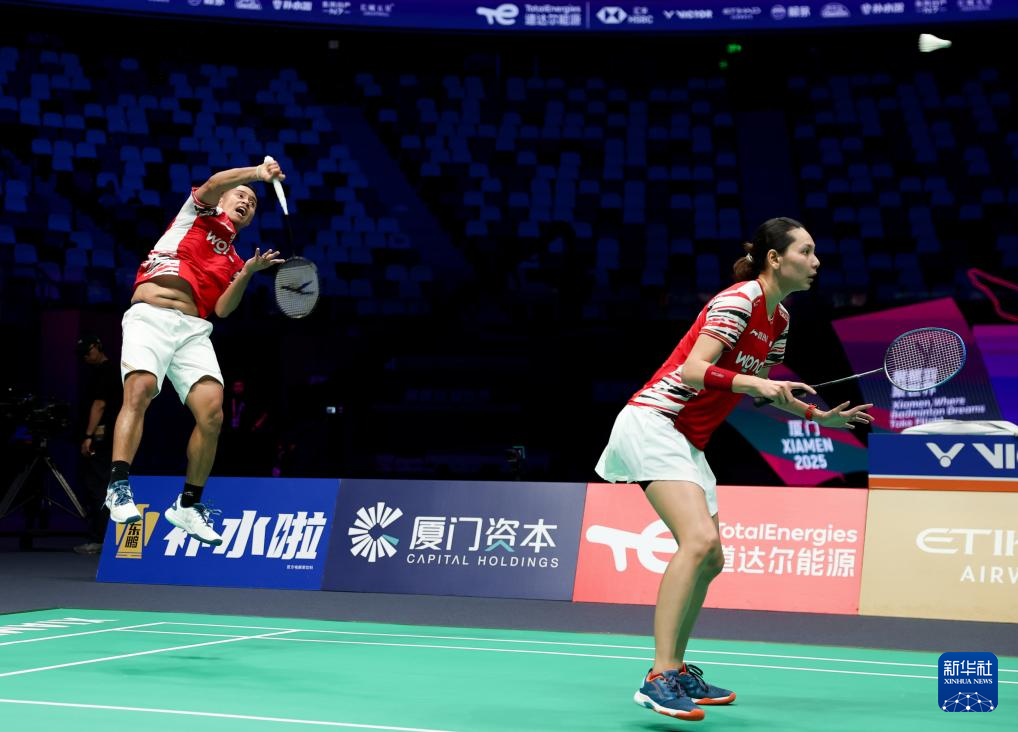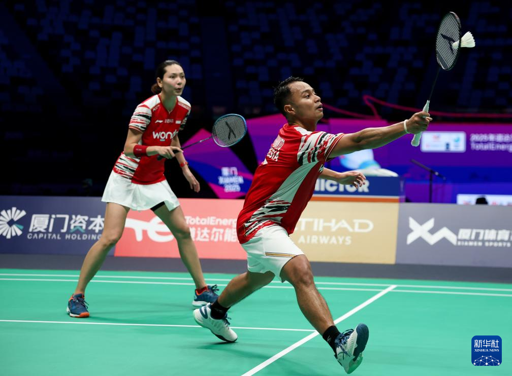 当日,在福建厦门举行的2025年苏迪曼杯世界羽毛球混合团体锦标赛D组比赛中,印度尼西亚队对阵印度队。