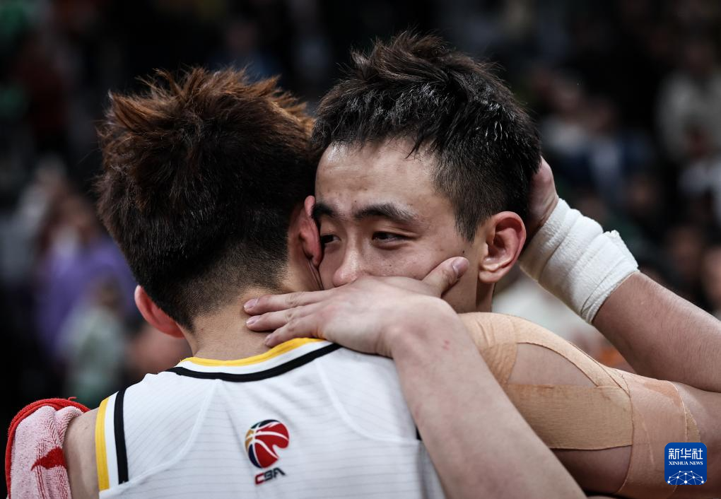 5月1日,浙江方兴渡队球员孙铭徽赛后与辽宁本钢队球员赵继伟(右)拥抱。