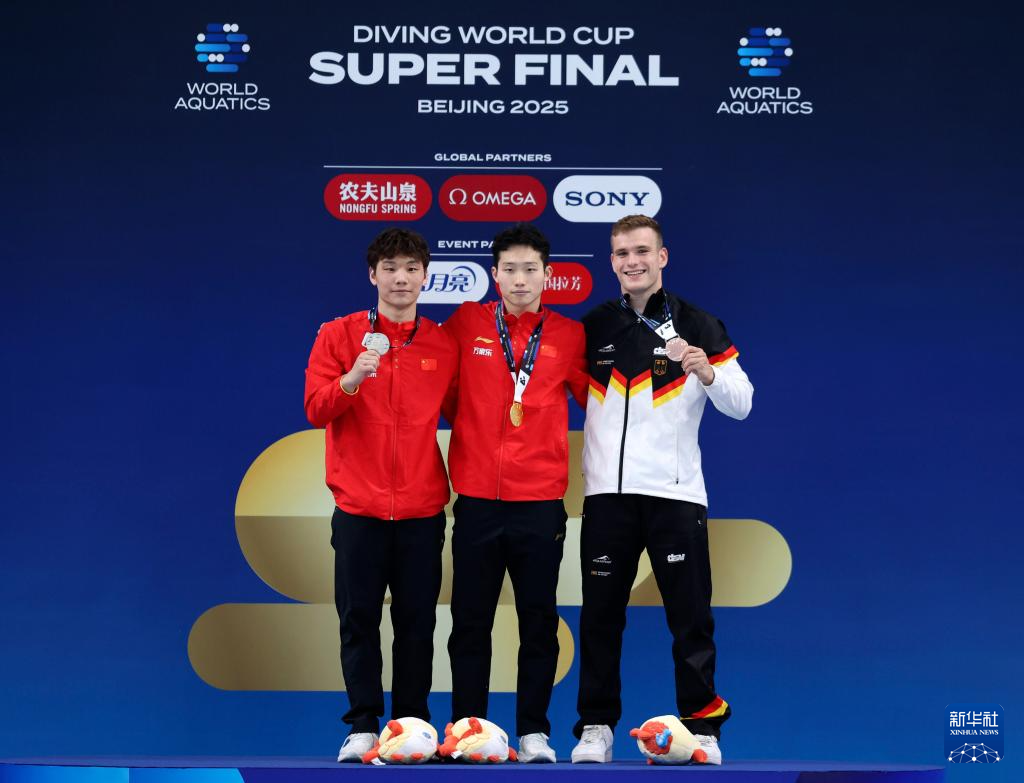 当日,在北京举行的2025年世界泳联跳水世界杯总决赛男子3米板决赛中,中国选手王宗源、郑九源分别以519.25分、505.05分的成绩获得冠、亚军。