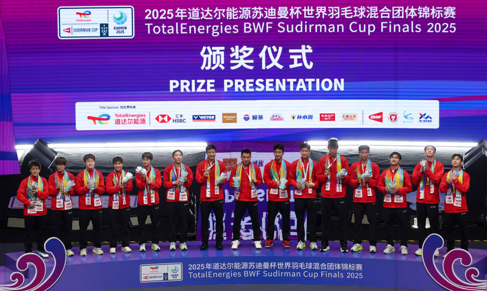 新华社厦门5月4日电(记者丁文娴、付敏)4日,厦门凤凰体育馆,在现场超过一万名观众的呐喊声中,中国队3:1击败劲敌韩国队,连续第四次、历史第14次夺得苏迪曼杯世界羽毛球混合团体锦标赛冠军。