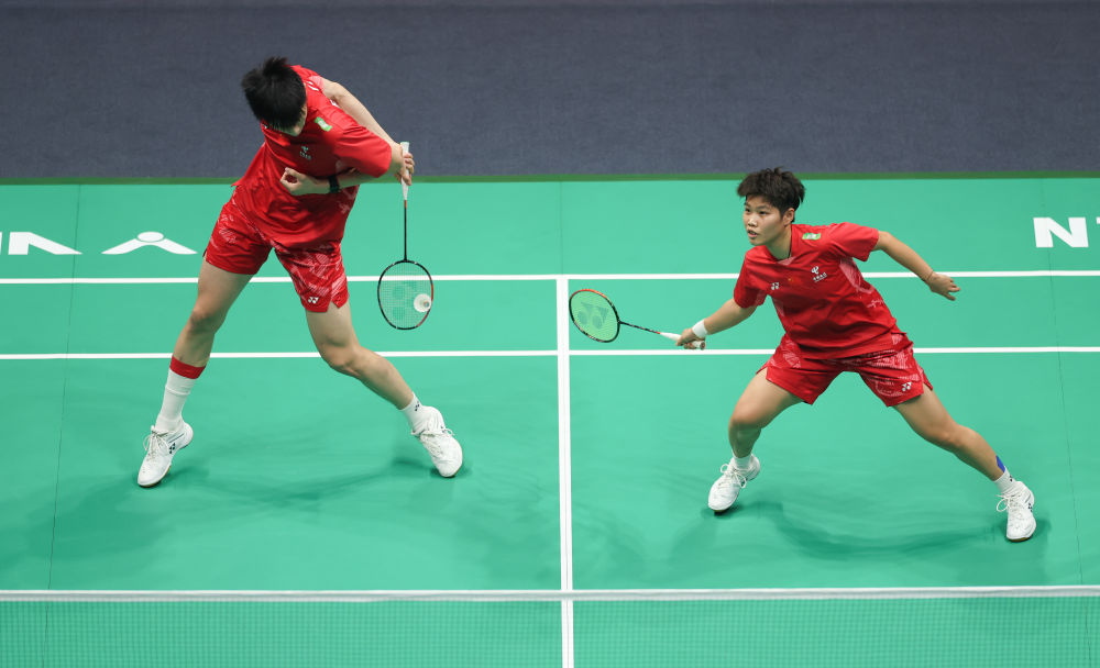 第四场女双比拼由中国队的刘圣书/谭宁对阵白荷娜/李绍希。历史交手记录处于下风的中国姑娘气势如虹,以21:14和21:17连下两城,为国羽锁定胜利。