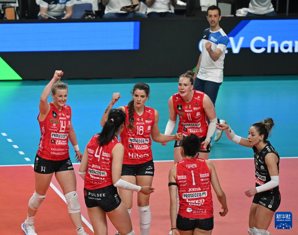 当日,在土耳其伊斯坦布尔举行的2025年女排欧冠半决赛中,意大利科内利亚诺队3比1战胜意大利米兰队,晋级决赛。