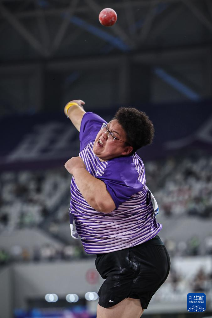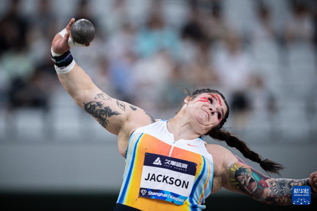 5月3日,美国选手杰克逊在女子铅球比赛中。她以20.54米的成绩获得冠军。