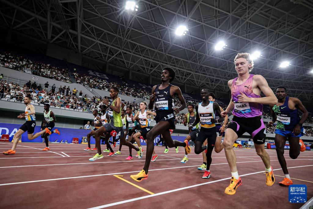 5月3日,参加男子5000米比赛的选手们在比赛中。