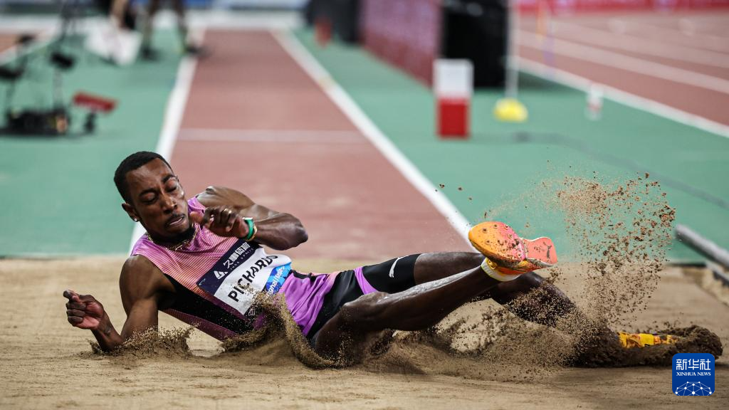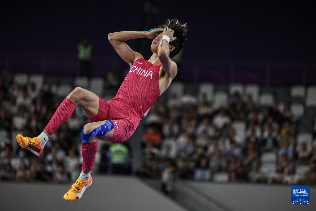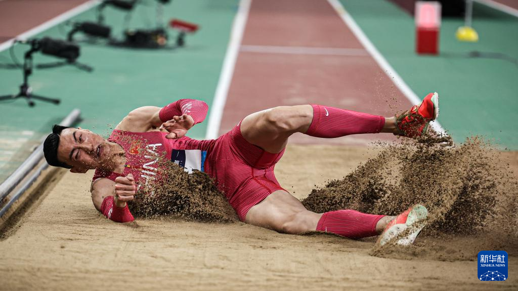 5月3日,中国选手舒衡在男子跳远比赛中。他以8.18米的成绩获得亚军。