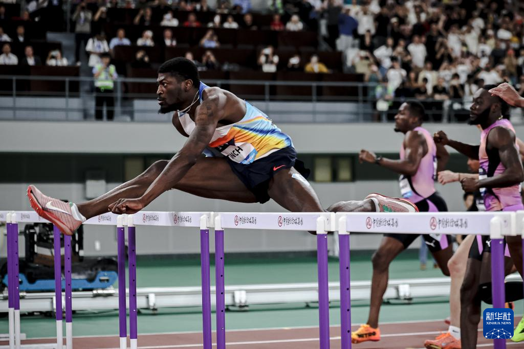 5月3日,美国选手廷奇在男子110米栏比赛中。他获得冠军。
