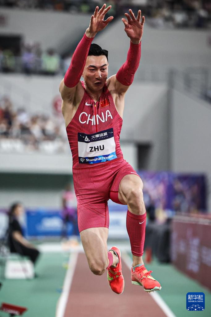 5月3日,中国选手朱亚明在男子三级跳远比赛中。他以16米92的成绩获得季军。