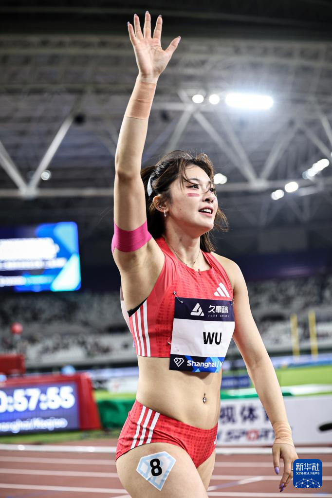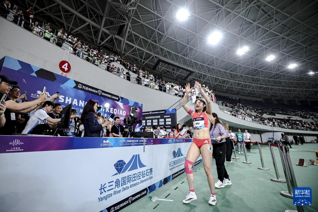 5月3日,中国选手吴艳妮在女子100米栏赛后向观众致意。她以12秒96的成绩获得第八名。