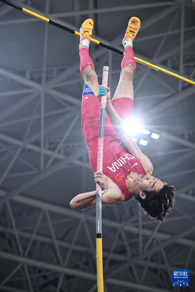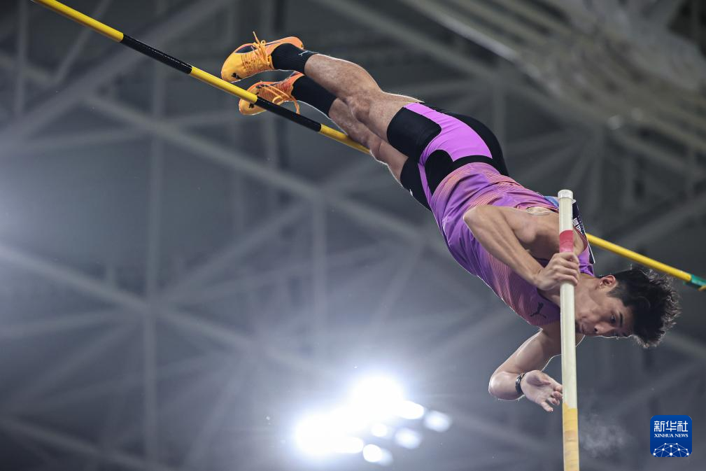 5月3日,中国选手黄博凯在男子撑杆跳高比赛中。他以5米42的成绩获得第九名。