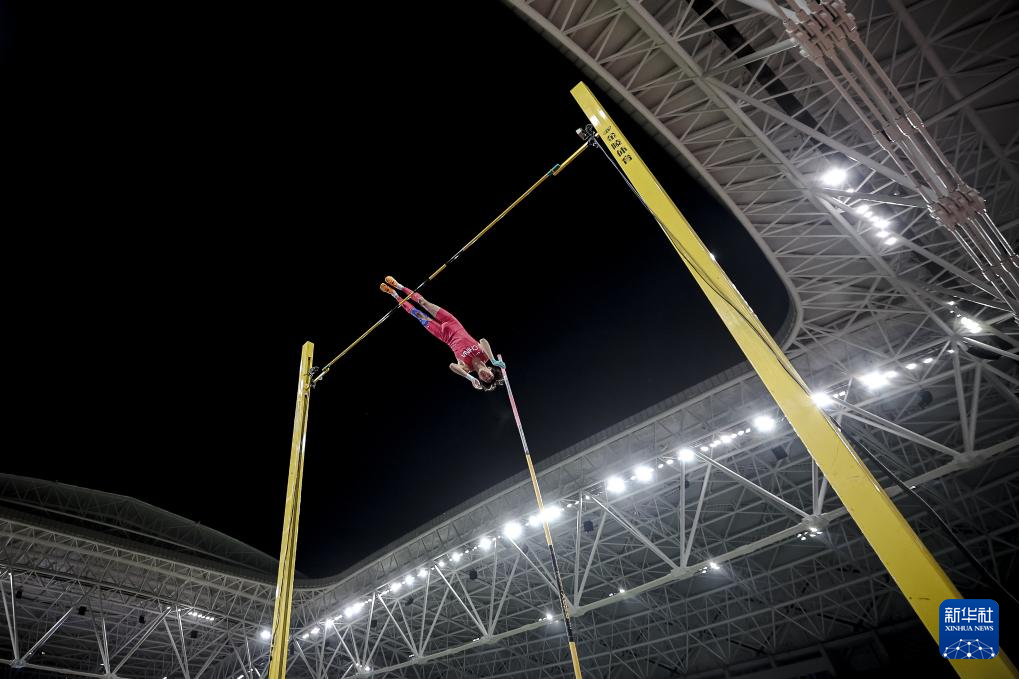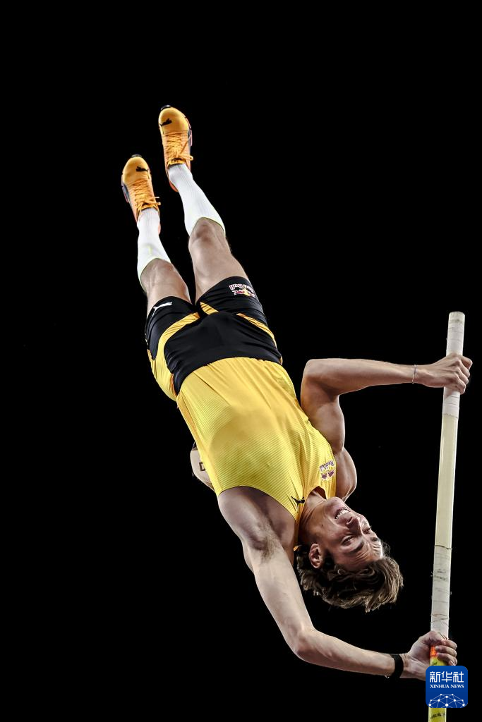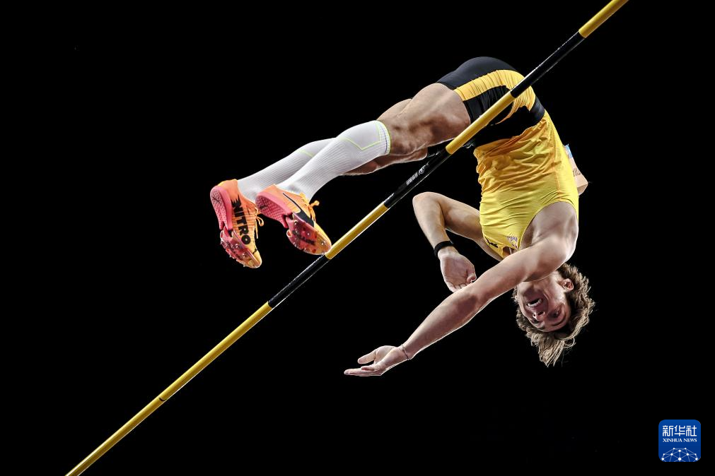 5月3日,瑞典选手杜普兰蒂斯在男子撑杆跳高比赛中。他以6米11的成绩获得冠军。