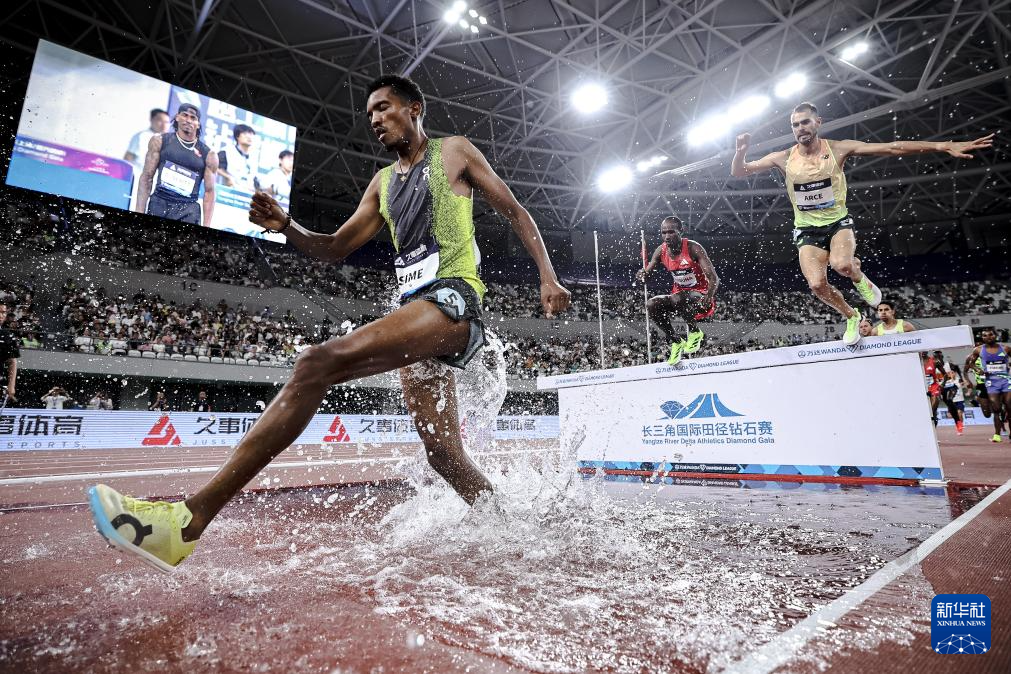 5月3日,埃塞俄比亚选手亚伯拉罕·西姆(左)在男子3000米障碍赛中。他以8分07秒92的成绩获得冠军。