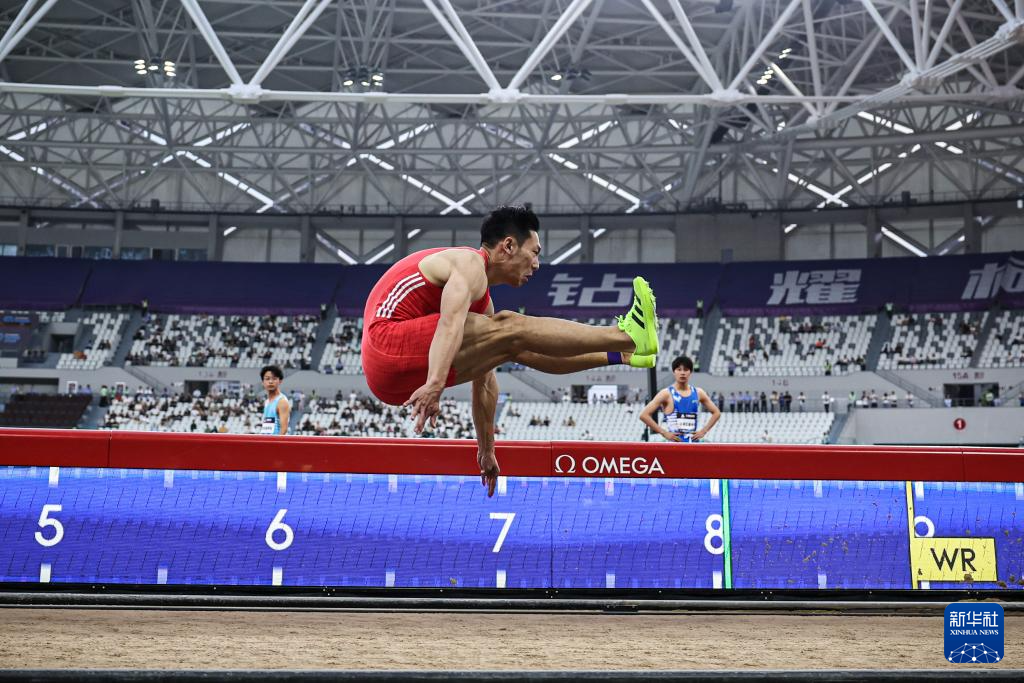 5月3日,中国选手粟文在男子三级跳远比赛中。他以16米53的成绩获得第七名。