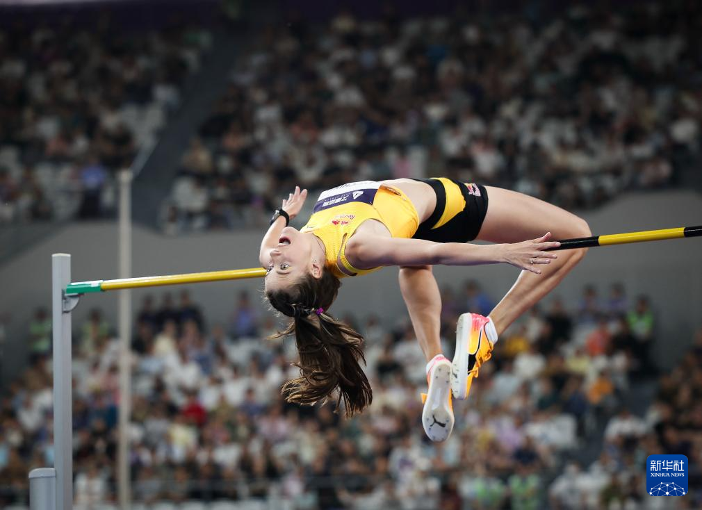 5月3日,乌克兰选手马胡齐克在女子跳高比赛中。她以2米00的成绩获得冠军。