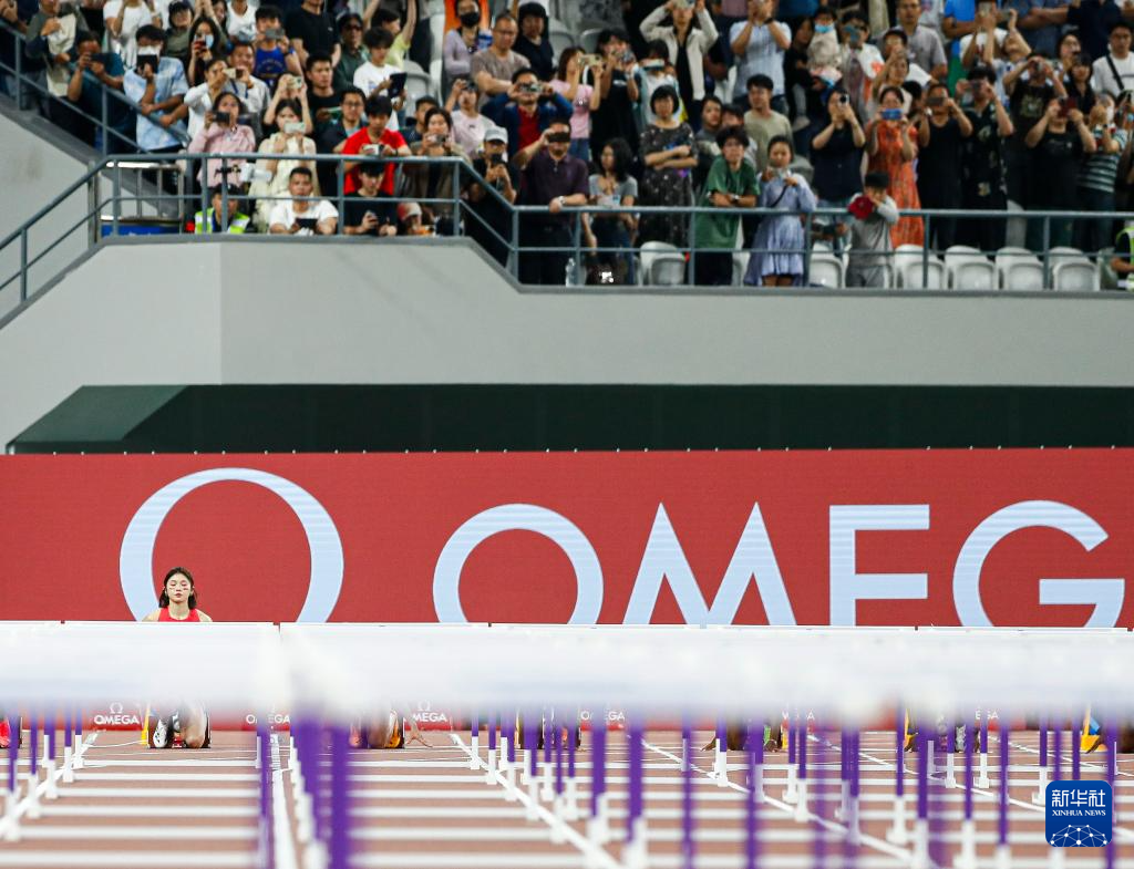 5月3日,中国选手吴艳妮在女子100米栏比赛前。她以12秒96的成绩获得第八名。