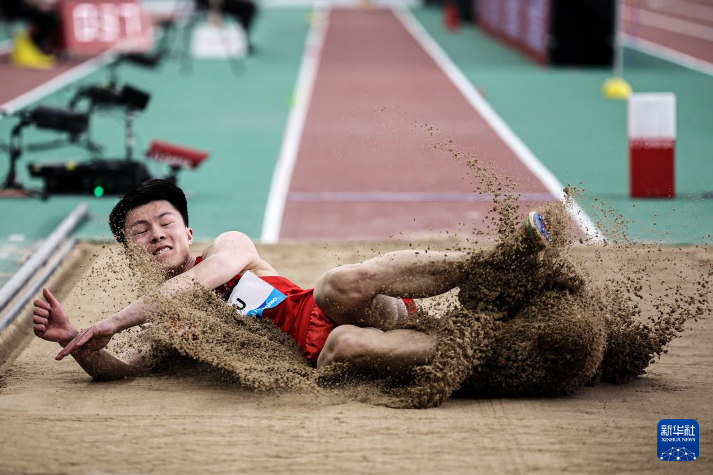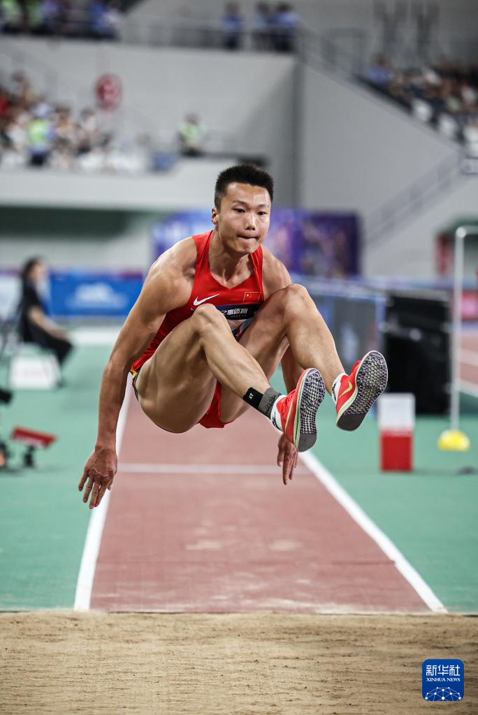 5月3日,中国选手石雨豪在男子跳远比赛中。他以8.21米的成绩获得冠军。