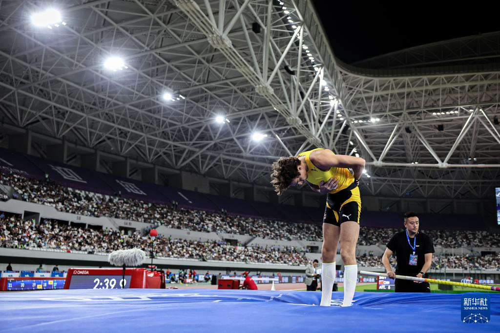 5月3日,在男子撑杆跳高比赛中,瑞典选手杜普兰蒂斯挑战由自己保持的世界纪录但未能成功后向现场观众致意。他以6米11的成绩获得冠军。